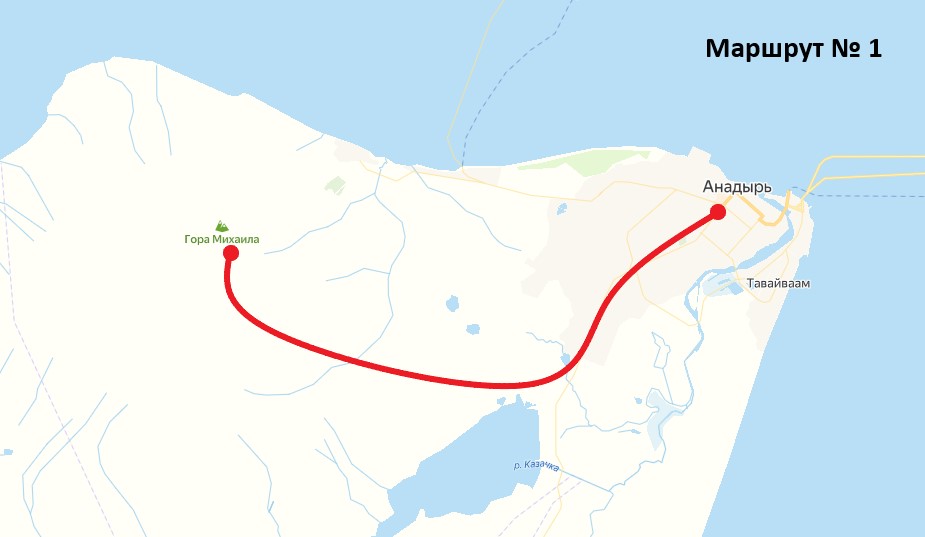 Можно выбрать любой из двух вариантов экскурсии: с пешим маршрутом или без него. Если у вас немного времени, то лучше отдать предпочтение маршруту №1, полюбоваться окружающим ланд-шафтом и сфотографироваться на вершине горы. Если есть такая возможность, то мы советуем остановить свой выбор на маршруте №2 и совершить небольшое увлекательное путешествие, спустившись с горы к морскому берегу Анадырского лимана. Маршрут проходит по живописному северному склону, и позволяет полтора-два часа побыть на природе, почувствовать ароматы и звуки тундры, ощутить вкус растущей здесь северной ягоды – голубики, морошки, шикши и брусники. После прогулки по берегу Анадырского лимана путешественники выйдут к дороге, ведущей в город, и возвратятся в гостиницу на автомобиле.