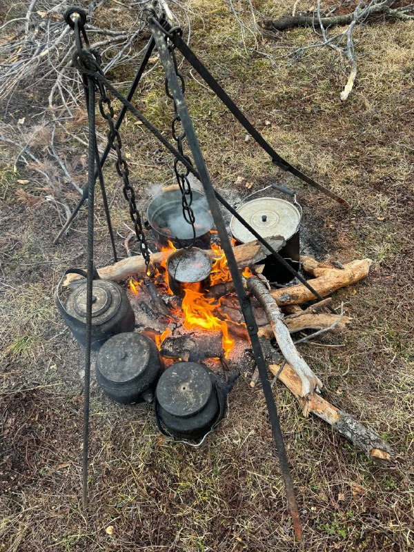 - Завтрак во временном лагере.